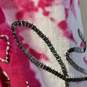 New! Pink & white tie dye. Jewelled lettering and heart. Silver glitter border.