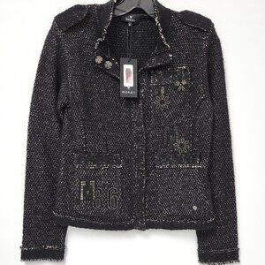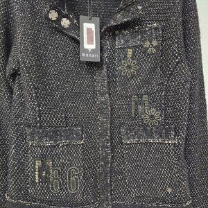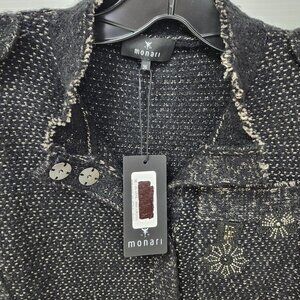 Monari Women's Black Cardigan W/Buttons/Snowflakes/Shoulder Pads Size 6