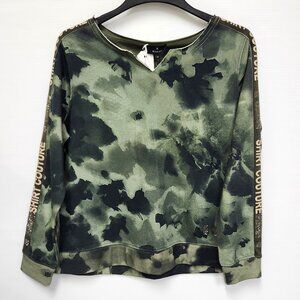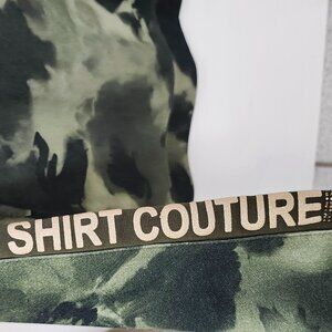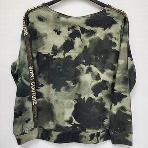 Monari Women's Cargo Green V-Neck Sweater W/"Shirt Couture" Embellishment Size 8