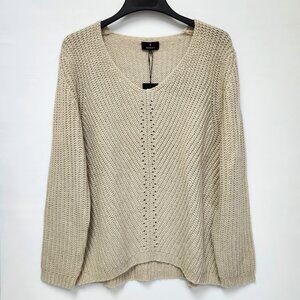 Monari Women's Gold Sparkle Long Sleeved V-Neck Pullover Sweater Size 14
