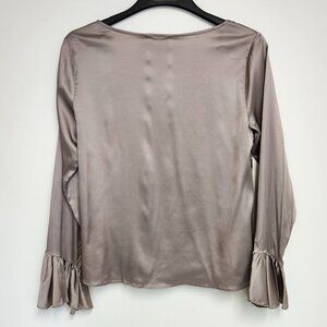 Monari Women's Silver Taupe Satin Blouse W/Ruffled Cuffs Size 4, 6, 8 & 10