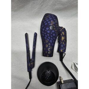 Monat Mini Travel Hair Dryer And Mini Iron Purple/Gold Cheetah Print- Travel