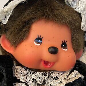 Monchhichi Bebichhichi Maid Black White Doll Stuffed Plush Toy Sekiguchi Japan