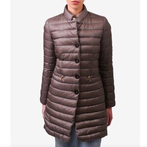 Moncler _ Eggplant Long Thin Puffer Jacket