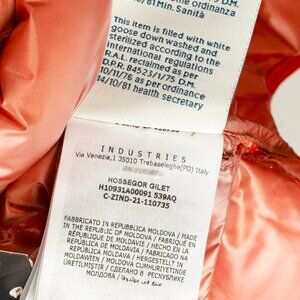 Circa 2021, the Hossegor vest from Moncler is crafted in a quilted Orange nylon taffeta, and is insulated with goose down. It features a sleeveless design, a stand collar with snap closures, a two-way zip closure, a tonal logo patch at the chest, flap pockets at the waist with snap closures, and is lined in a light orange.