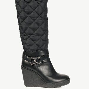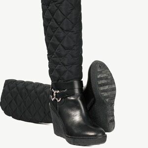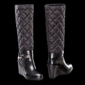 Moncler New Cernobbio Black Quilted Leather Wedge Boots