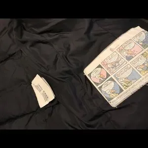 The logos on zippers are all in tack but show some slight signs of wear, cartoon logo label inside also shows some wear but overall great condition