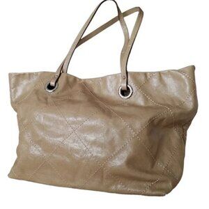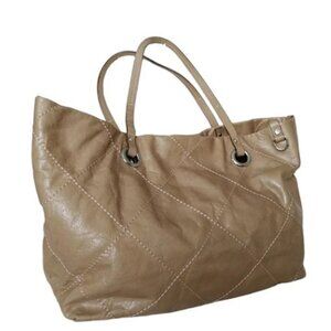 A stylish and practical tote bag, crafted from leather, featuring a quilted design. Equipped with two leather top handles for comfortable carrying on the shoulder or by hand. Feature a snap-top closure and includes organized interior with a zip and patch pockets, and a large main compartment. Known for combining elegance and modern aesthetics, suitable for everyday use.