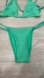 Stylish green textured bikini set. Features a triangle top and matching bottoms. Worn less than 8 times. It is in 8/10 condition. Plastic label for sizing on top is starting to come off.