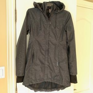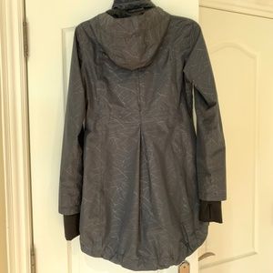 Details: Very flattering style which skims the body. There are pull tabs at waist, bottom hem and at hood for creating the look you want. Beautiful seaming throughout and zippered pockets for carrying your valuables. Thumb holes at sleeve end. Measurements: 18" pit to pit, 16" waist, 22" bottom and 27" - 27.5"