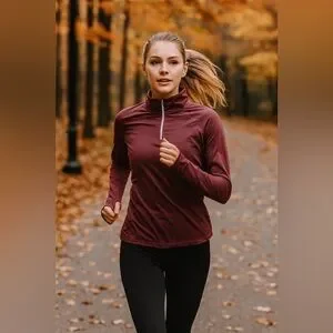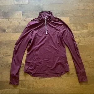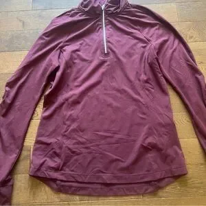 - Soft burgundy quarter-zip top with a stand collar. Lightweight, breathable fabric for everyday wear. Raglan sleeves and a flattering curved hem for ease of movement. Easy-care and versatile for layering or solo wear.