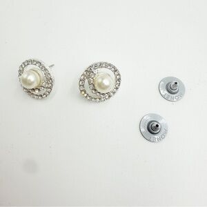 Monet Elegant Silver-Tone Earrings with Faux Pearls & Rhinestones