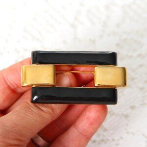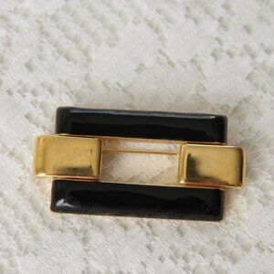 Monet Gold and Black Rectangle Enamel Brooch