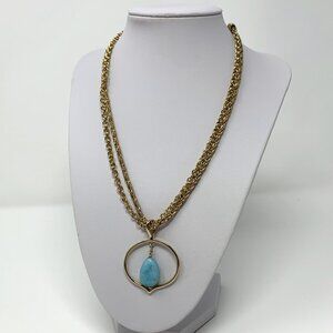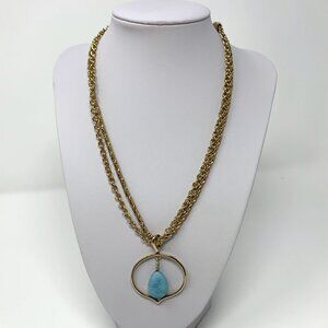 Monet Gold-Tone Necklace 17" Turquoise Stone Pendant