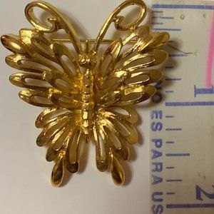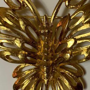 Monet Stamped 1980's Butterfly Brooch, Gold Tone