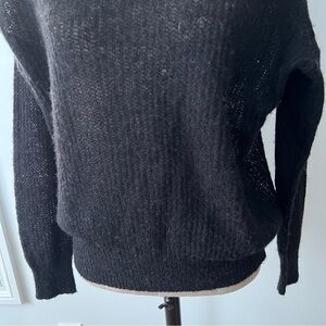 Mango casual soft cozy black loose rib knit lightweight long sleeve crew neck sweater.