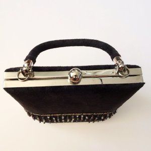 Moni Mini Black Velvet Beaded Fringe Clutch Purse