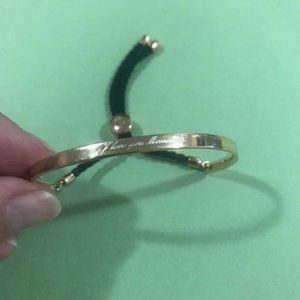 Teal for courage. This iconic friendship bracelet is an essential piece and the perfect gift for friends. The bracelet features a smooth, curved bar in 18ct Gold Vermeil on Sterling Silver. with a gap of approximately 12.6cm in length, with a gap of approximately 5.3cm between each end. A toggle slides to easily adjust the cord's length for a snug fit.