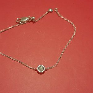 A striking, ethically sourced, and hand cut solitaire diamond bracelet. With an adjustable slider that glides over the chain to fit you perfectly, this piece is effortlessly elegant for every day.