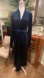 Elegant navy blue full-length robe-style dress by Monika Blank.