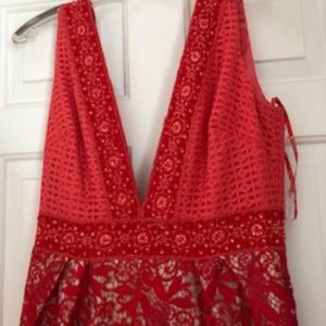 Gorgeous Monique L'Huillier Gown! BNWT (it does have security tag that must be attached for return or exchange). Beautiful lace bottom with nude underlay, cutout/lace upper with beading at neckline, down the open back and under bust. This dress has never been worn or altered. Purchased for my son's wedding but wasn't appropriate for barn wedding.