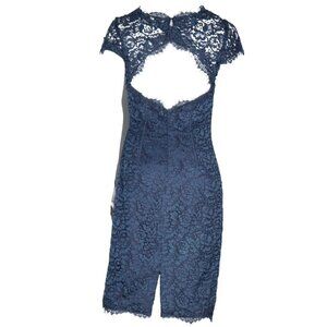 Monique Lhuillier ML Women Size US6 Small Navy Blue Short Knee Length Lace Dress