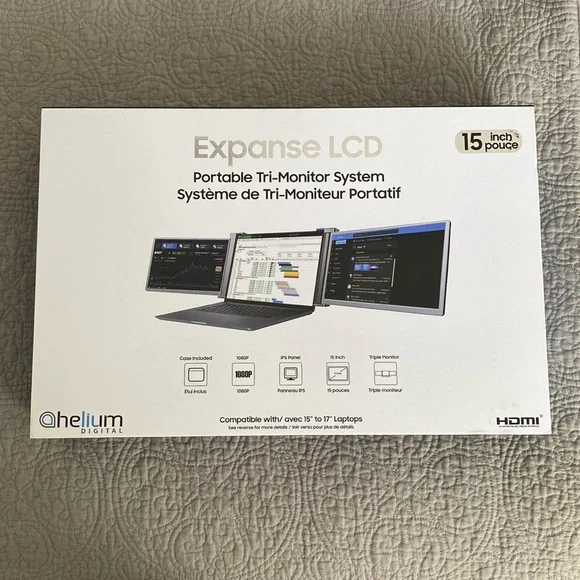 Helium Digital Portable Tri-Monitor System. Connects to your laptop and provides two additional screens for ultimate productivity! 15 inch, case included.