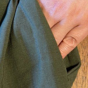Medium khaki army green Monk & Lou's spaghetti-strap button-up women's jumpsuit. Has wide legs with pockets and elasticized waist. Comfortable and easy-to-wear lightweight summer piece in 100% polyester. Made in China. NWOT.