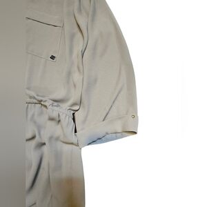 Monk & Lou Midi Flowy Dress Spring Summer Neutral Minimalist Layered Size L