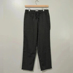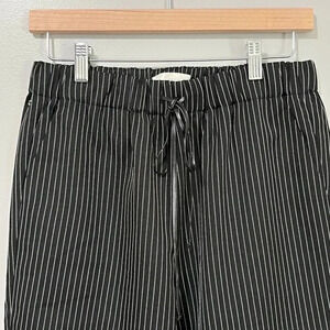 New condition! Lightweight pull on style dress pant. Elastic waistband with drawstring front tie. Relaxed fit. Black with thin white stripes.
