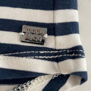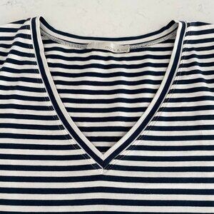 Monk & Lou Short Sleeve V Neck Striped T Shirt Top in Cotton Spandex Navy & White - no size tag