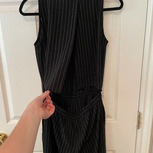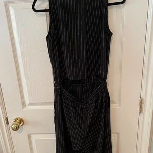 Cute and Comfortable Monk and Lou black pinkstripe sleeveless wide-leg jumpsuit with open back design.
