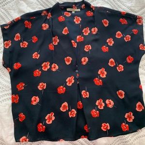 Dark blue with poppies. Medium monk and Lou blouse. Worn twice. Very good condition.
