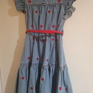 Monnalisa Denim Smock Dress w/ Heart detail and Bow Belt