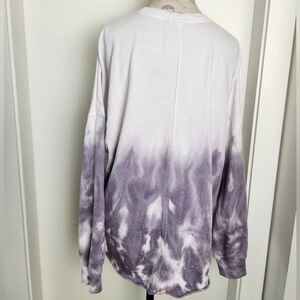 White and Purple with hints of Pink Tie-Dye Long-sleeved Crewneck Sweatshirt with Ribbed Trim, by Mono b.