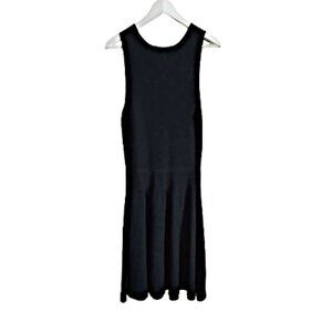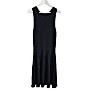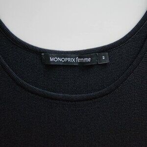 Fitted black sleeveless stretch ponte knit dress with full skirt from French brand Monoprix Femme