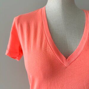 Monrow Neon Orange Cotton T-Shirt Womens Size S V Neck