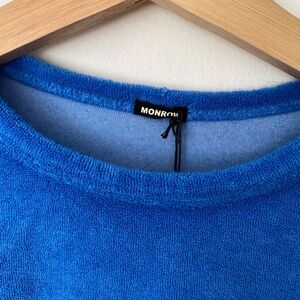 Terry Cloth is here to stay. This boxy crew neck tee is slightly cropped and features an elastic waist band for maximum comfort.