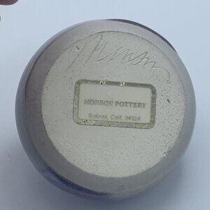 The piece is signed by the artist and has the original Monson Pottery label on the base. This exceptional ceramic art piece is perfect as a standalone display or as a part of a curated pottery collection.