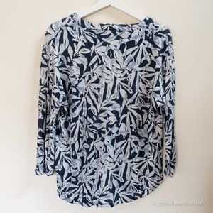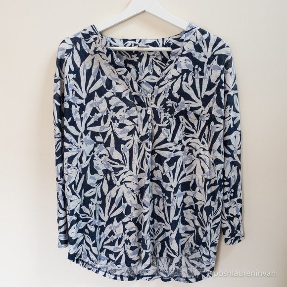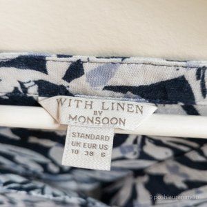 Monsoon 100% Linen Knit Top – Blue / Floral Print – US 6