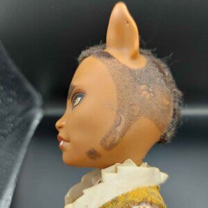 Meowlody: Has some paint chipped on her face (seems to be common with this doll). She is missing her tail and some of her accessories. She has soft hair, but has glue seepage. I did a wash with dawn, conditioner, and tried soaking her hair in Oxyclean. She will probably need some form of glue be gone or whatever you prefer.