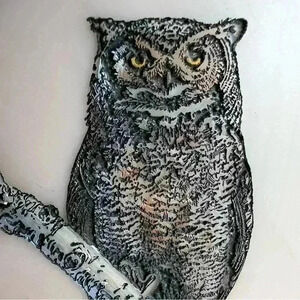 Montana Marble Inc Wildlife Art Owl 🦉 Etched Plaque 1991 W/ Stand