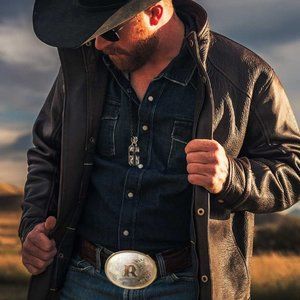 Montana Silversmiths Oval Shaped Buckle in Two Tone Silver and Gold Finish with Hand Tooled Custom Made Leather Belt