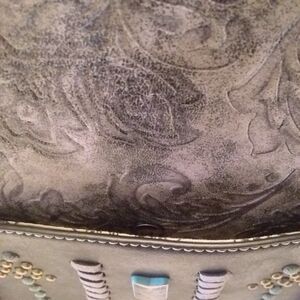 Stylish shoulder bag with intricate patterns. Features studded details and decorative stitching. Perfect for everyday use.
