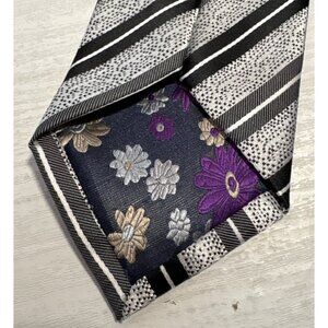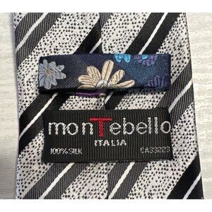 Crafted from 100% silk, this Montbello Italia tie exudes sophistication. The black and silver striped pattern enhances its versatile and polished appeal.