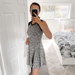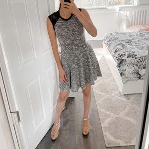 Elegant Monteau dress made of cozy and warm material, perfect for chilly summer nights. Laced shoulders and back, fit at the chest, flowy at the bottom.