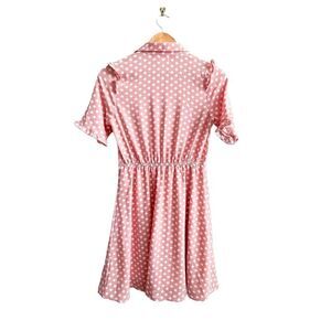 Monteau Dress Pink White Polka Dot Short Sleeved Button Up Fit & Flare Women's S