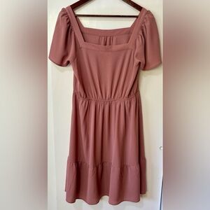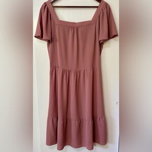 Monteau| Dusty Rose Pink Short Sleeve Square Neck Swing Midi Dress Sz L