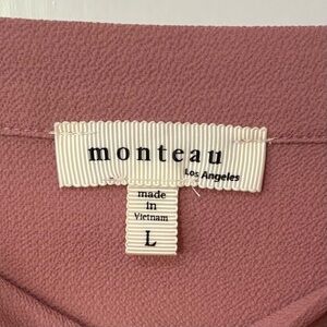 Monteau dusty rose short sleeve midi dress with a swing skirt, size large.