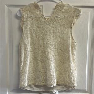 This elegant lace sleeveless top in cream is perfect for any occasion. Its delicate design adds a touch of sophistication to your wardrobe.